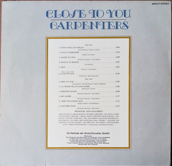 Written-By – John Bettis, Richard Carpenter