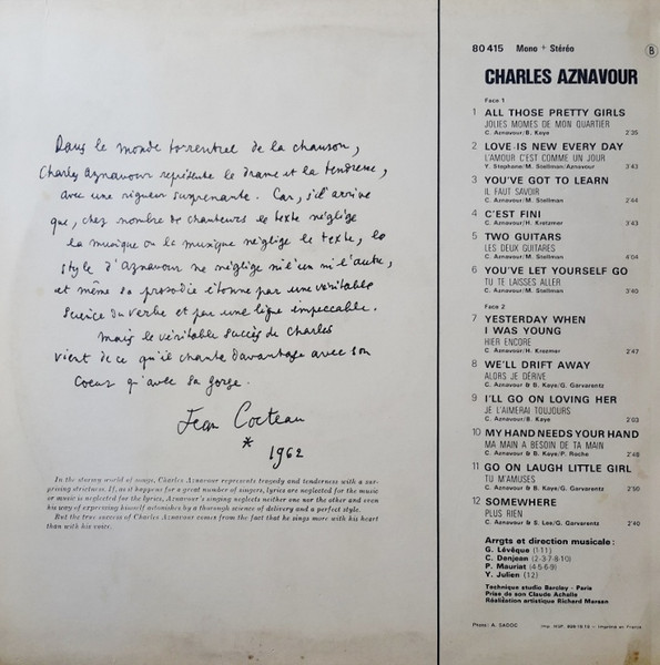 Written-By – C. Aznavour*, M. Stellman*