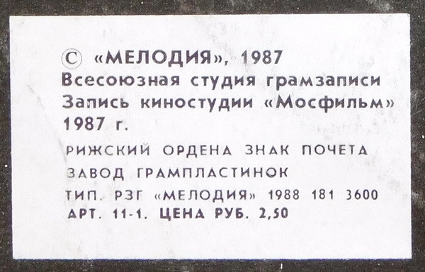 - Lyrics By – Б. Гребенщиков* (tracks: А2, А4 to В3)