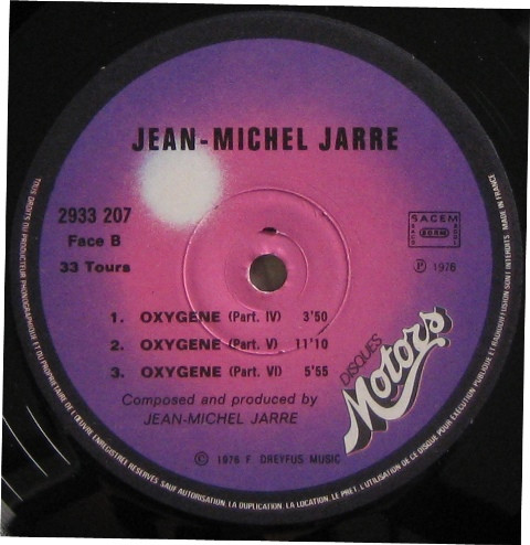 Oxygène: I.D.N. printer, (Y) code, "made in France" text beside Polydor logo on back cover, purple label design #2