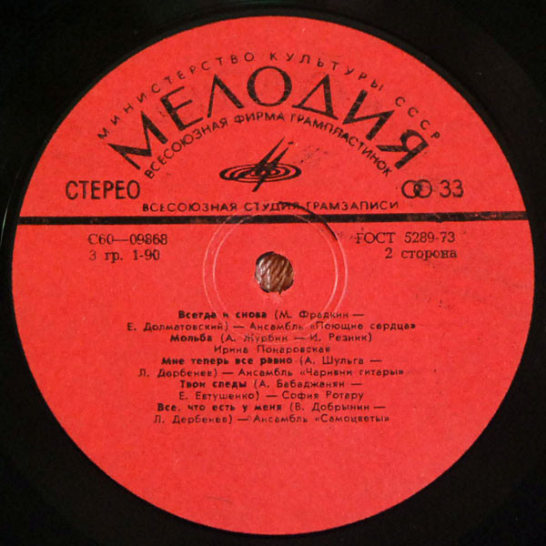 - Pressed By – Всесоюзная Студия Грамзаписи
