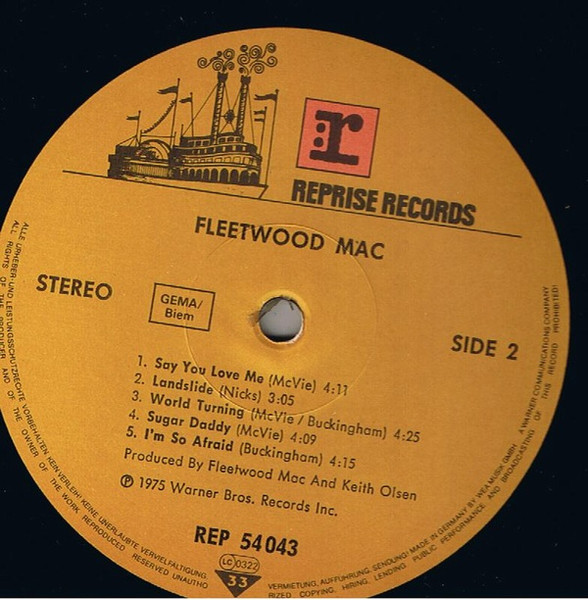 - Written-By – McVie* (tracks: A2, A5, B1, B3, B4), Buckingham* (tracks: A1, B3, B5), Curtis* (tracks: A3), Curtis* (tracks: A3), Nicks* (tracks: A4, A6, B2)