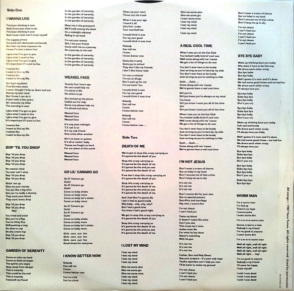 Printed inner sleeve with lyrics.