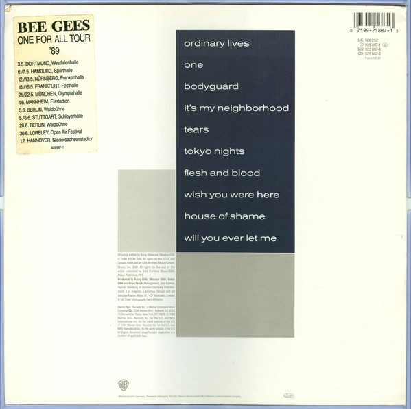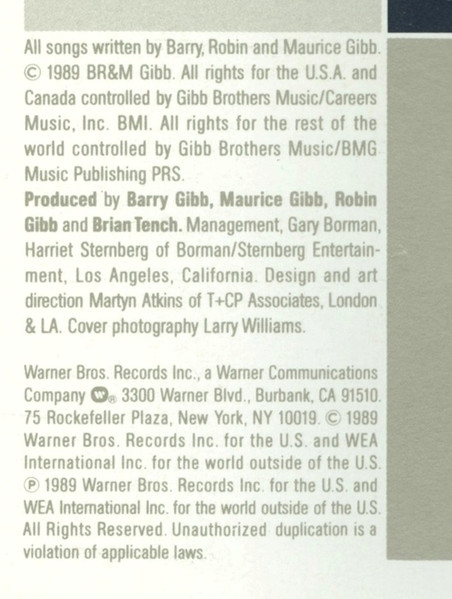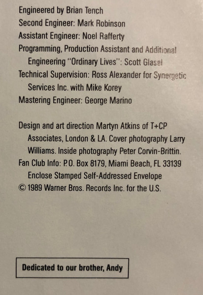Warner Bros. Records Inc., a Warner Communications Company W® 3300 Warner Blvd., Burbank, CA 91510. 75 Rockefeller Plaza, New York, NY 10019 © 1989 Warner Bros. Records Inc. for the U.S. and WEA International Inc. for the world outside of the U.S. ℗ 1989 Warner Bros. Records Inc. for the U.S. and WEA International Inc. for the world outside of the U.S.