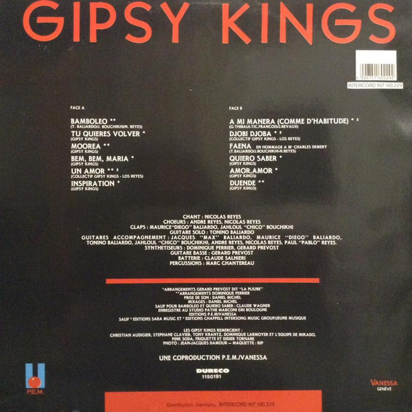 - Written-By – C. François* (tracks: B1), G. Thibault* (tracks: B1), Gipsy Kings (tracks: A2, A3, A5, B4 To B6), J. Revaux* (tracks: B1), J. Bouchikin* (tracks: A1, B3), Los Reyes (tracks: A5, B2), N. Reyes* (tracks: A1, B3), T. Baliardo* (tracks: A1, B3)