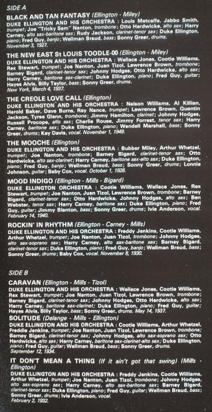 - Alto Saxophone – Harry Carney (tracks: A1, A2, A6, B2, B3), Johnny Hodges (tracks: A2, A3, A5, A6, B2 to B4, B6), Otto Hardwick (tracks: A1, A2, A4, A5, B1, B2, B4), Russell Procope (tracks: A3, B6)