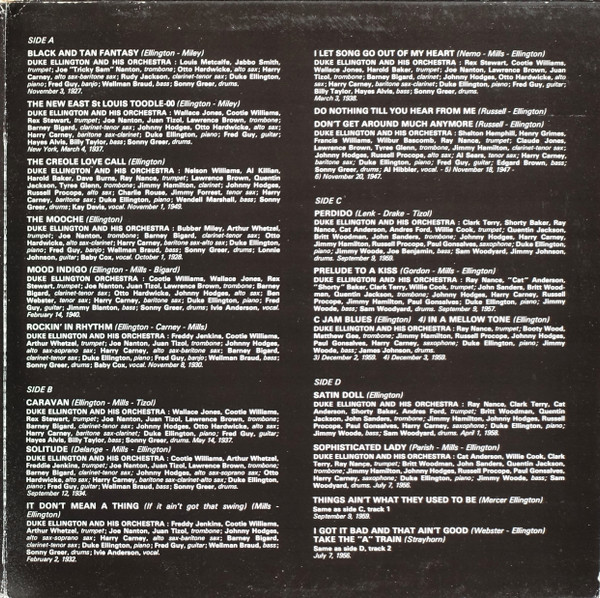 - Piano – Duke Ellington (tracks: A1 to B4, B6 to D4)