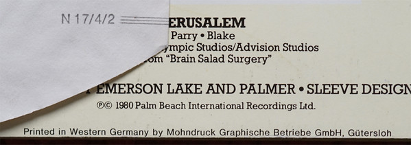 - Arranged By – Emerson, Lake And Palmer*