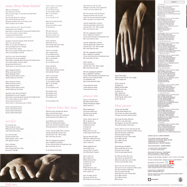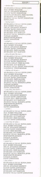 - Backing Vocals – Davey Johnstone (tracks: A1, A2, A4 to B1, B3 to B5), Marlena Jeter (tracks: A2, A5, B1, B3, B4), Mortonette Jenkins (tracks: A2, A5, B1, B3, B4), Natalie Jackson (tracks: A2, A5, B1, B3, B4)