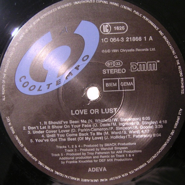 (p) 1991 Smack Productions Inc. (c) 1991 Chrysalis Records Ltd. Cooltempo, 13 Bramley Road, London W10 6SP.