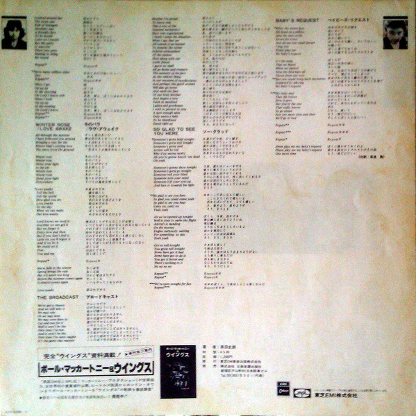 Released with obi, inner sleeve and 4-page insert with Japanese liner notes and lyrics in English and Japanese. Insert lists B3 as After The Ball / How Many Million Miles.