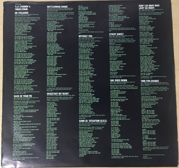- Backing Vocals – Bob Rock (tracks: A2, A4,), David Steele (4) (tracks: A2 to A5, B2 to B5), Donna McDaniel (tracks: A2 to A5, B1, B3 to B5), Emi Canyn (tracks: A2 to A5, B1, B3 to B5), Mark La France*, Vince Neil (tracks: A2, A4, A5, B2, B3, B5)