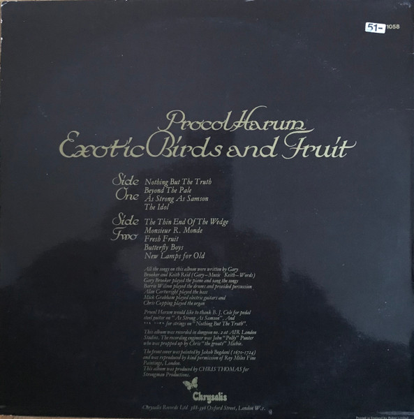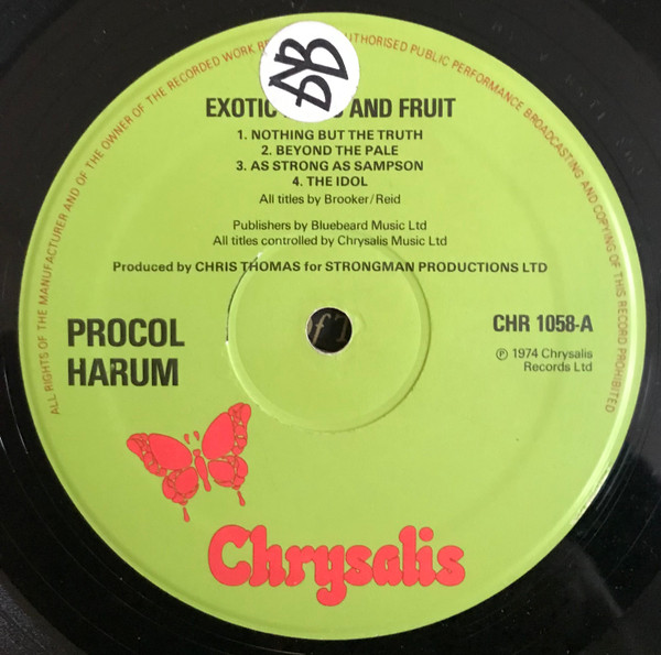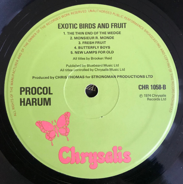 This version las label rim text. A similar UK version WITHOUT label rim text exists: Procol Harum - Exotic Birds And Fruit.