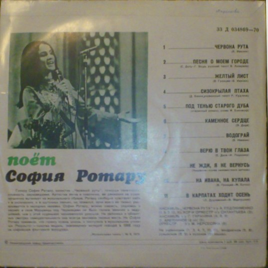 - Ensemble – Концертно-эстрадный Ансамбль П/У Г. Гараняна* (tracks: A4, A6, B3), Червона Рута (tracks: A1, A3, B1, B4, B5)
