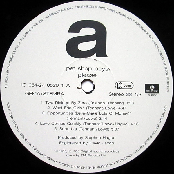 ℗ 1985 [A3], ℗ 1986 Original sound recording made by EMI Records. Ltd.