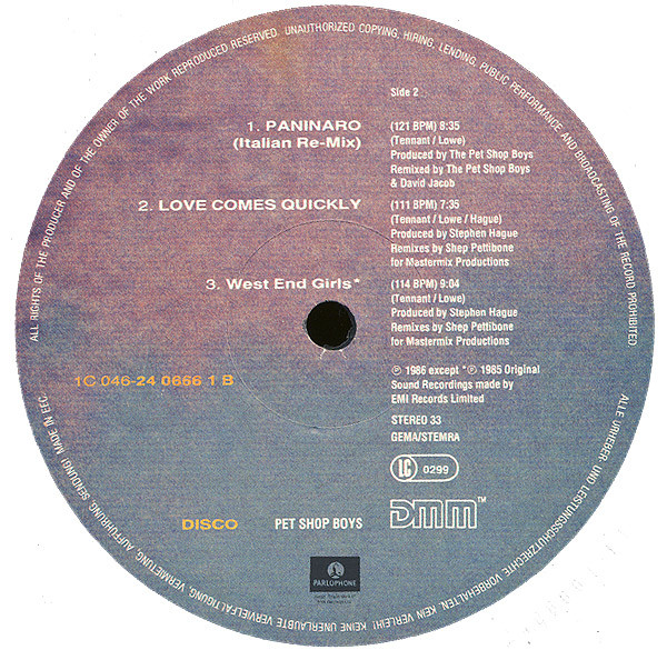 Suburbia, Paninaro and Love Comes Quickly are digital recordings.