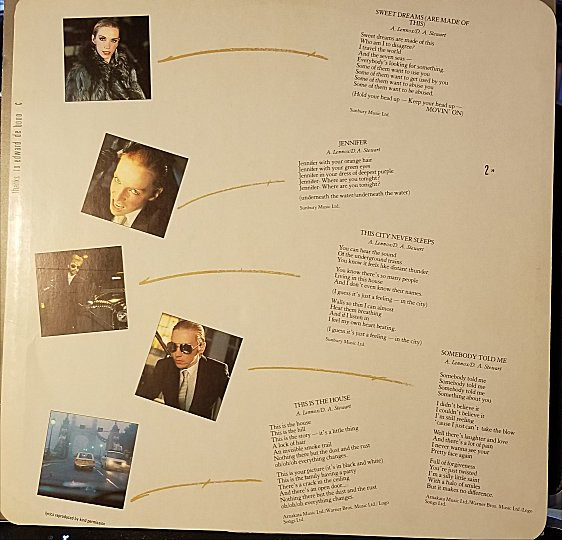- Written-By – A. Lennox* (треков: A1, A2, A4 to B5), D. Stewart* (треков: A1, A2, A4 to B5)