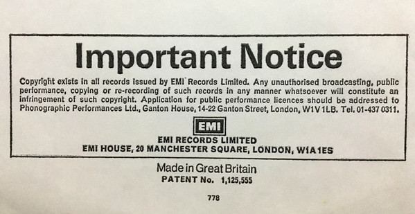 Some copies were imported to France and have a sticker "Pathé Marconi" (See image)