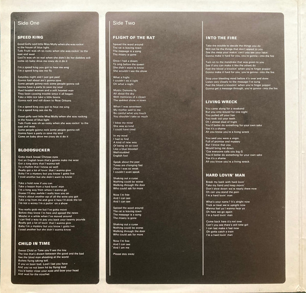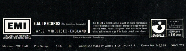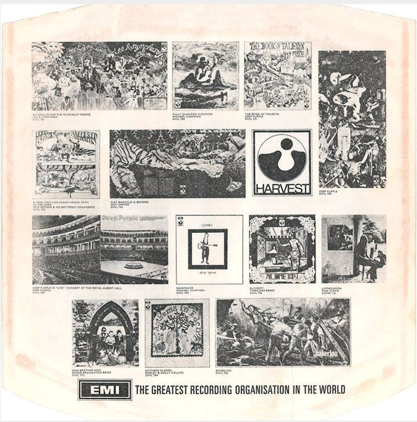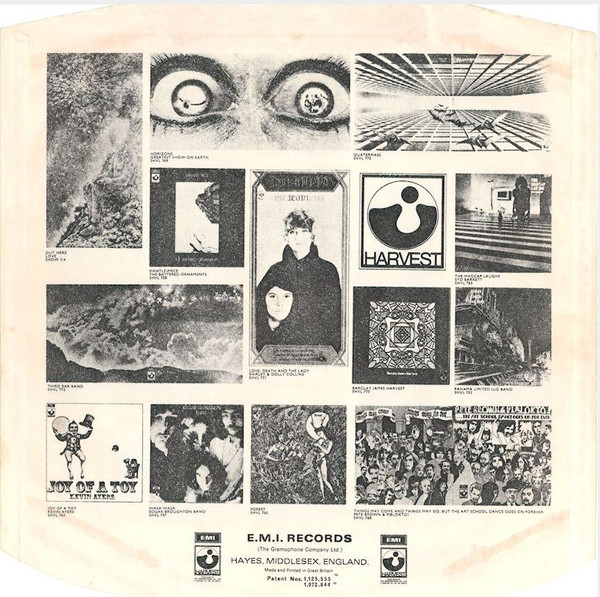 - Inner sleeve: Copies bought in the first month of release feature a plain inner sleeve with 'Patent Nos. 1125555' text and 'Made In Great Britain' text in BLACK PRINT near the bottom on 1 side. Shortly after this LP was released (about July / August 1970) EMI introduced the 'Harvest' advertising inner sleeve. So with all copies made from this date onwards mostly having the 'Harvest' advertising inner sleeve instead. However, plain EMI inner sleeve were also used;