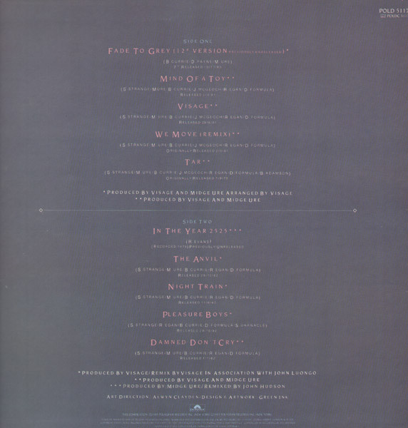 - Producer [Produced By] – Midge Ure (tracks: A1 to B1, B5), Visage (tracks: A1 to A5, B2 to B5)