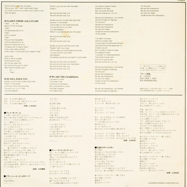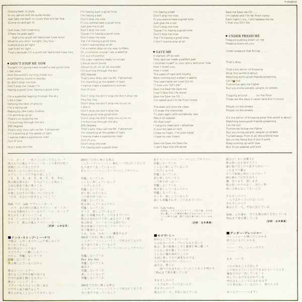Tracks A8 (Under Pressure) and B4 (Teo Torriatte) are included in the Japan press of the LP but not in the other releases from other countries where Bicycle Race and Seven Seas Of Rhye appear instead.