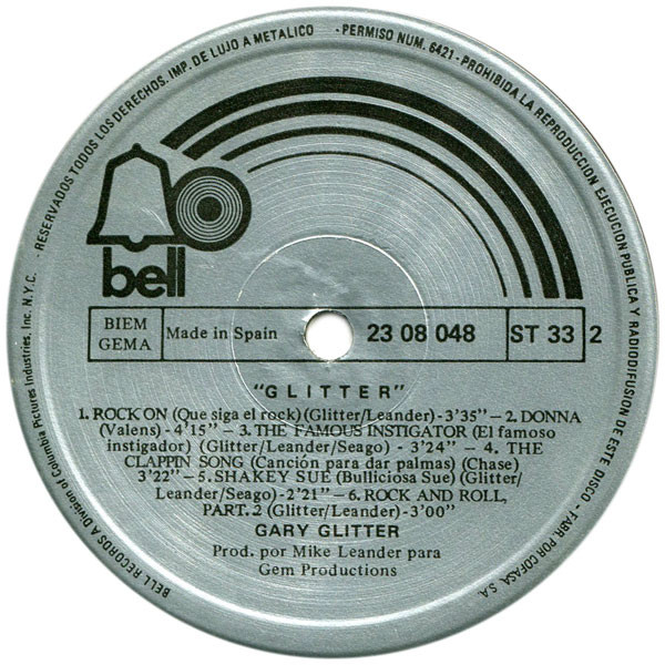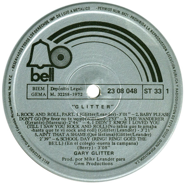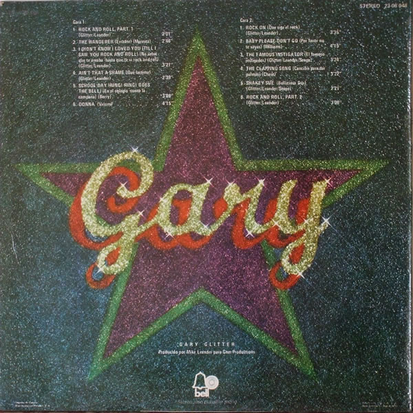 On front cover is printed "rock and roll * Gary Glitter" like a sticker.