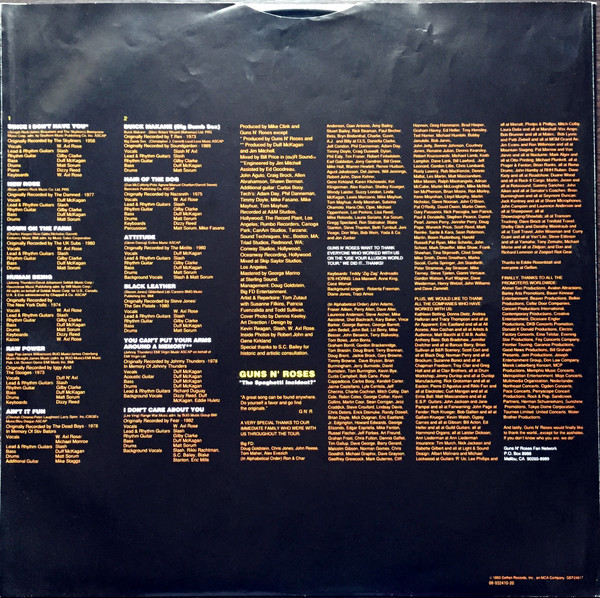 - Producer – Duff McKagan (tracks: B5), Guns N' Roses (tracks: A1 to B4, B6), Jim Mitchell (tracks: B5), Mike Clink (tracks: A2 to B4, B6)