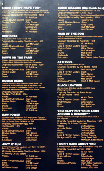 Backing Vocals [Background Vocals] – Blake Stanton, Eric Mills, Rikki Rachtman*, Slash (3), S.C. Bailey*