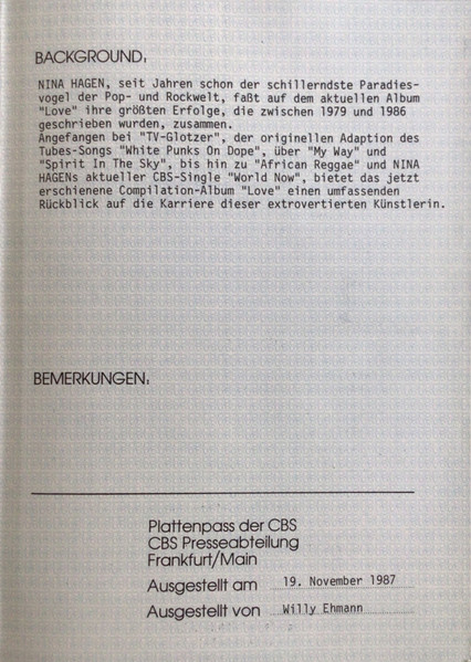- Copyright © – CBS Schallplatten GmbH