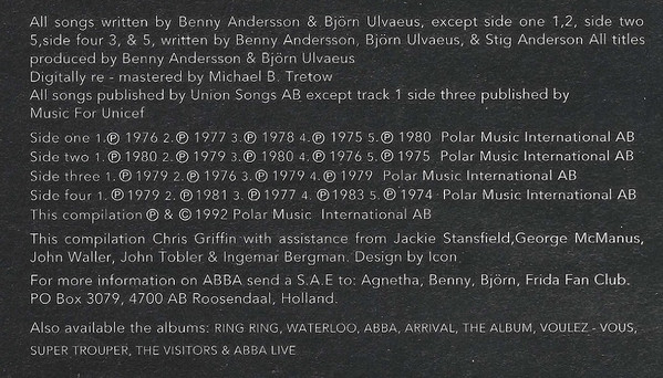 - Written-By – Benny Andersson & Björn Ulvaeus*, Stig Anderson (tracks: A1, A2, B5, D3, D5)