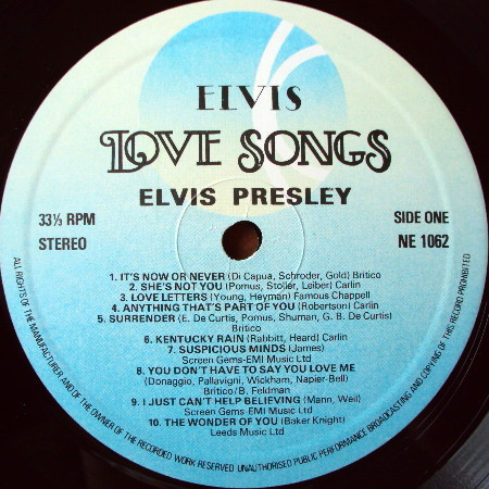 Note: various versions of this compilation exist under different names (& occasionally slightly different track positions) i.e. in Uruguay, Brazil, Venezuela & Argentina its simply called "Love Collection", in Spain it’s called "Canciones de Amor" & in France the LP Is called "Rendez-vous avec Elvis"
