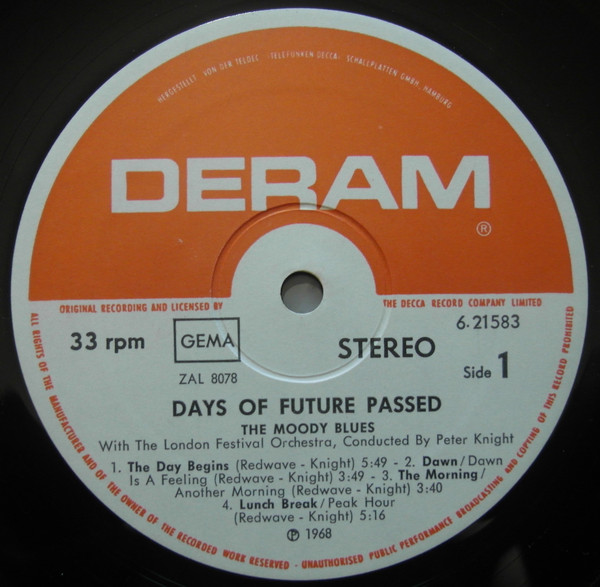 Difference to Days Of Future Passed: No Label Code on label and back cover; "STEREO" on back cover (up left)