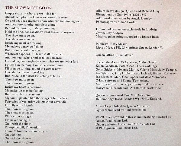 ℗ 1991 The copyright in this sound recording is owned by Queen Productions Ltd.