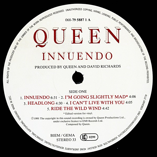 Different from Queen - Innuendo: This here release is without print above barcode.