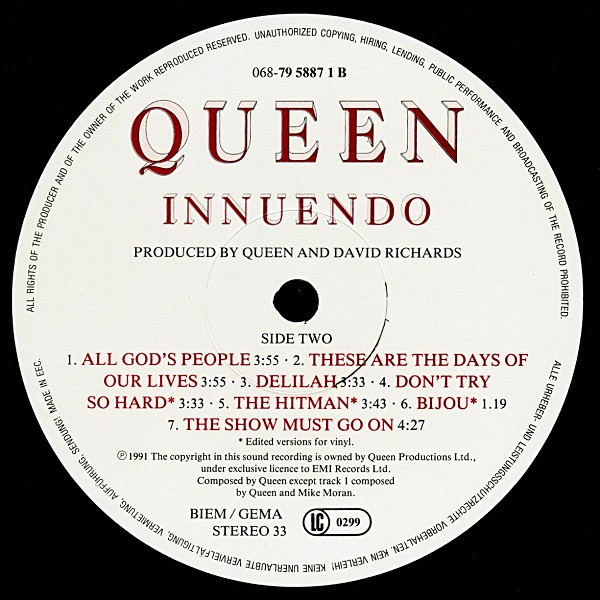 Labels: Composed by Queen except track B1 composed by Queen and Mike Moran