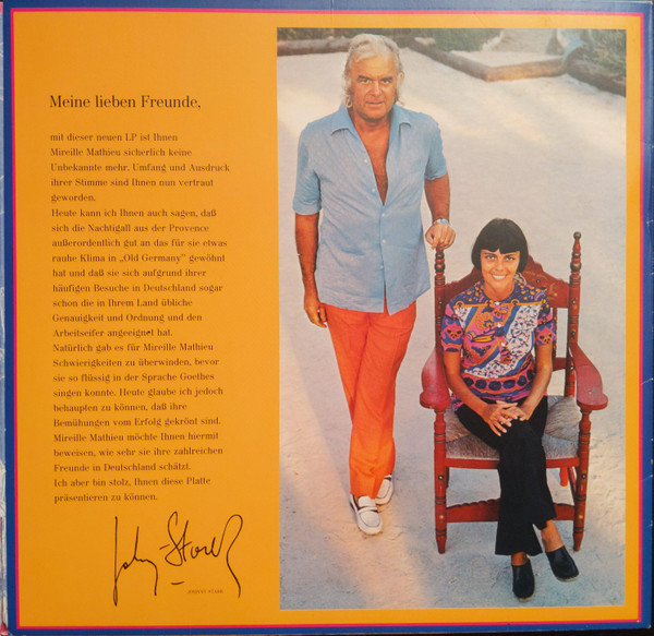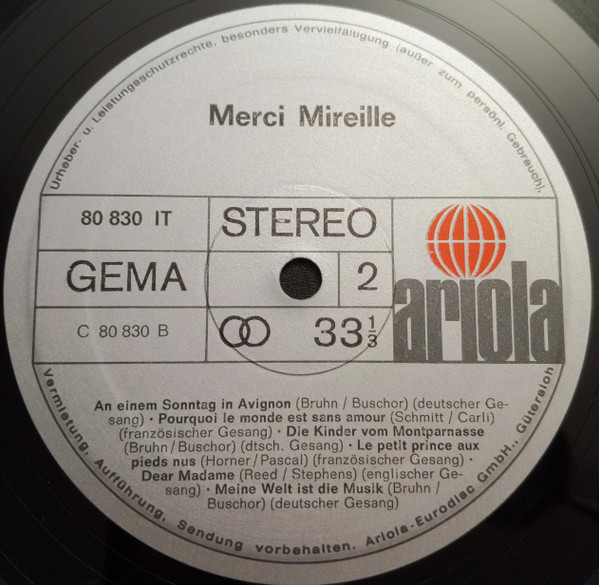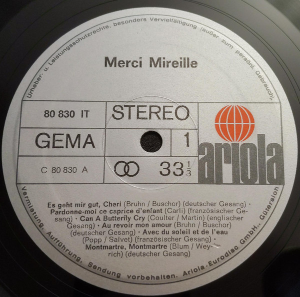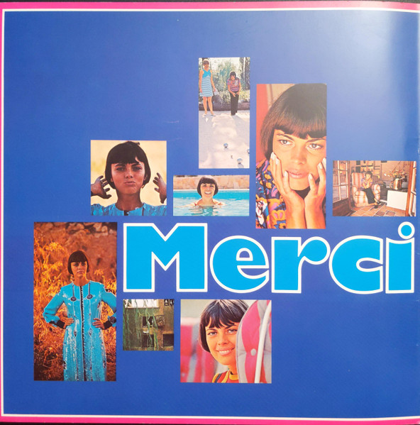 Left fold opens out again to reveal "Merci Mireille" and several pictures of the singer (this on thin cardboard).