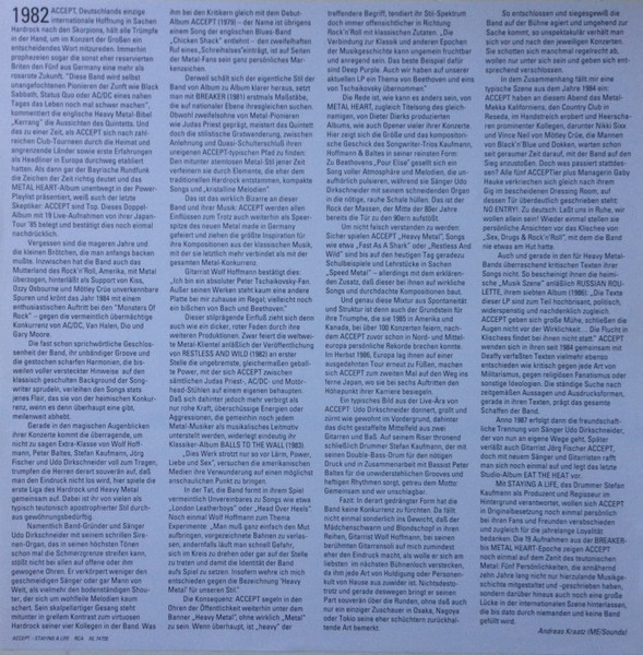 Comes with an original LP-format insert featuring the band's history in the German language. Some copies have a silver sticker on the front sleeve stating: 'Live 2 LP'.