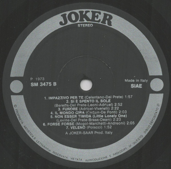 On back cover: I grandi della canzone ADRIANO CELENTANO