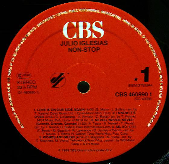 - Phonographic Copyright ℗ – CBS Grammofoonplaten B.V.