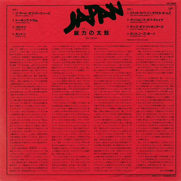 MADE IN JAPAN BY VICTOR MUSICAL INDUSTRIES, INC., LICENSED BY VIRGIN RECORDS LTD., ENGLAND. ℗ 1981 Ⓚ