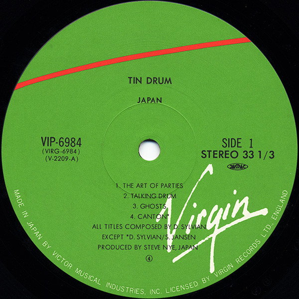 MADE IN JAPAN BY VICTOR MUSICAL INDUSTRIES, INC. LICENSED BY VIRGIN RECORDS LTD., ENGLAND