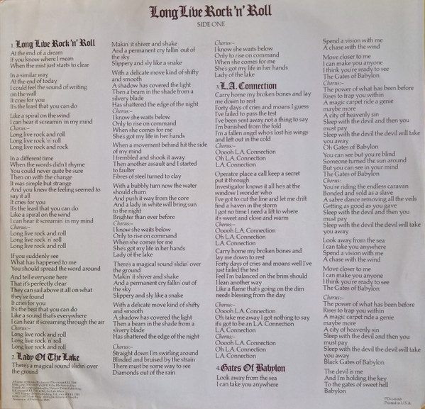 | A1 | Long Live Rock 'N' Roll | 4:25 | |