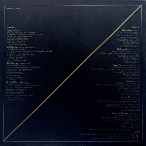 - Vocals – David Byron (tracks: B1 to B5), Ken Hensley (tracks: A1 to B2, B4 to B6), Mick Box (tracks: A1, A2, B5)