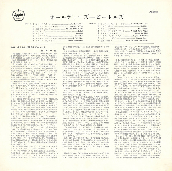 The photography of the back cover is reversed, Harrison is on the left side the circle with "but goldies" is on the right side.