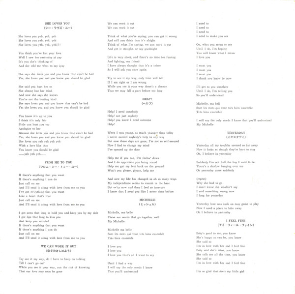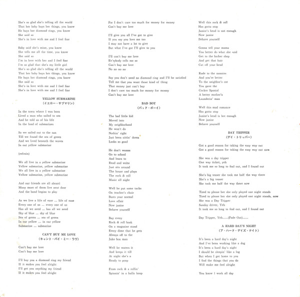 - with a text in Japanese and the lyrics in English, with the titles translated in Japanese.