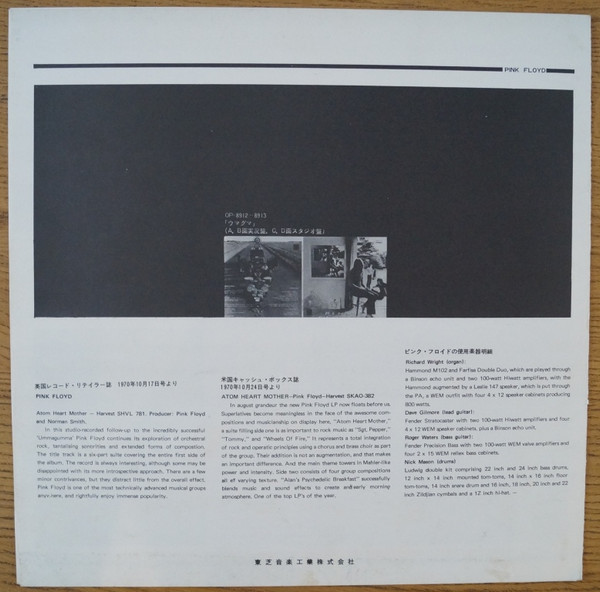 The photo with the red generic Japan Tour Commemorative obi is not necessarily unique to this release. When Pink Floyd toured Japan in 1971 and 1972, special red obis were added to their albums. These narrow "tour obis" feature Japanese text on them that says: "Welcome."