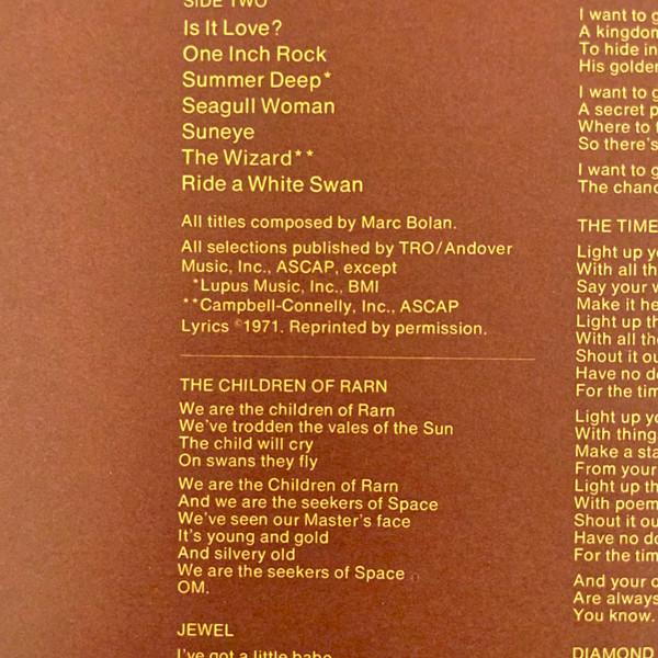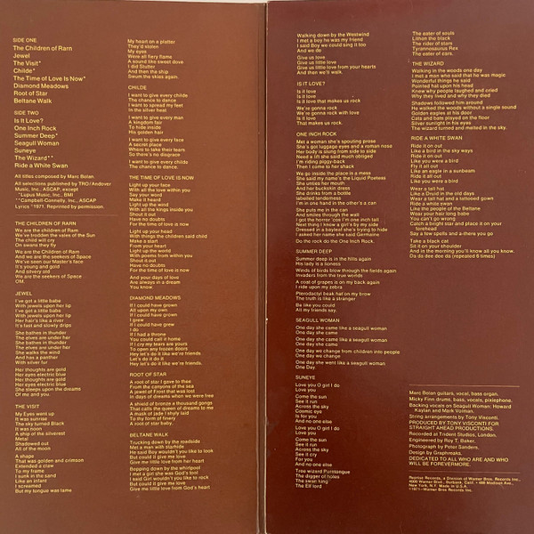 - Guitar, Vocals, Organ [Bass], Composed By – Marc Bolan