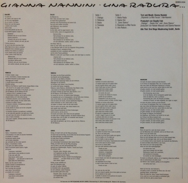 This release is similar to alternative release Gianna Nannini - Una Radura ... but without "PRS Hannover" embossing on back cover.