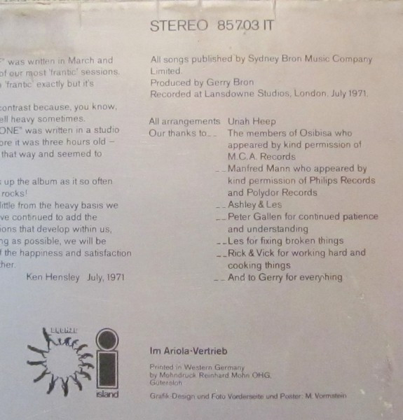 - Organ, Piano, Guitar, Acoustic Guitar, Vocals, Liner Notes [July, 1971] – Ken Hensley