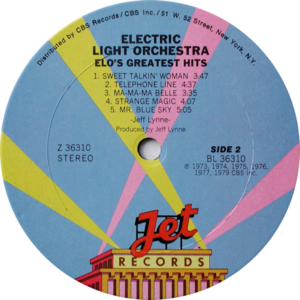 Label variant: has a triangle in a circle on the label; Electric Light Orchestra - ELO's Greatest Hits doesn't have this symbol